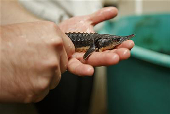Tiny now, this sturgeon could grow to six feet in length. The tales of these fish fill the award-winning book. Credit: Sara Stathas.